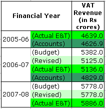Excise, State VAT, Motor Vehicle Tax and Electricity